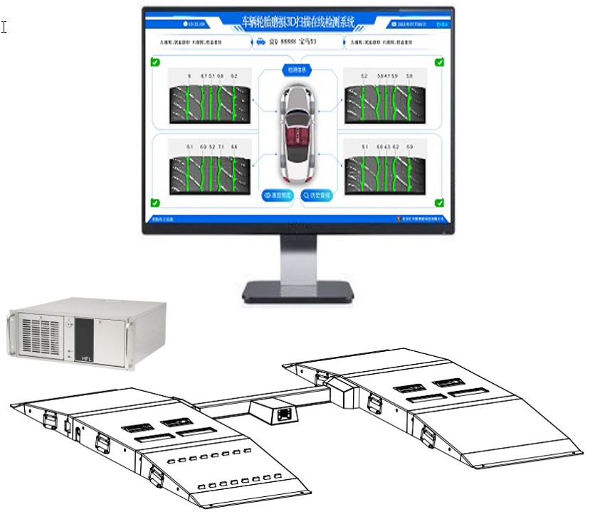 本系統(tǒng)是由北京匯豐隆智能科技有限公司開(kāi)發(fā)并擁有自主知識(shí)產(chǎn)權(quán)的一款全自動(dòng)化乘用車(chē)輪胎磨損3D掃描在線(xiàn)檢測(cè)系統(tǒng)。車(chē)主/司機(jī)僅需駕駛車(chē)輛從檢測(cè)系統(tǒng)駛過(guò),檢測(cè)系統(tǒng)即可快速、準(zhǔn)確的檢測(cè)出車(chē)輛輪胎的磨損狀態(tài)并可在顯示屏或及智能電視上顯示出本次檢測(cè)結(jié)果。檢測(cè)報(bào)告具有精度高、速度快、顯示界面信息齊全等特色。同時(shí),檢測(cè)報(bào)告記錄了被檢測(cè)車(chē)輛的車(chē)牌及車(chē)型信息,便于日后方便準(zhǔn)確查詢(xún)及對(duì)比。